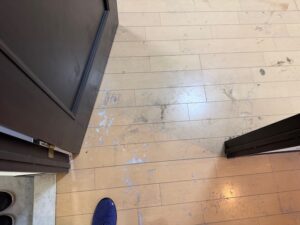 写真の床はマイルドなもを選択しましたが、どの部屋も正体不明の液体?の跡が付着。